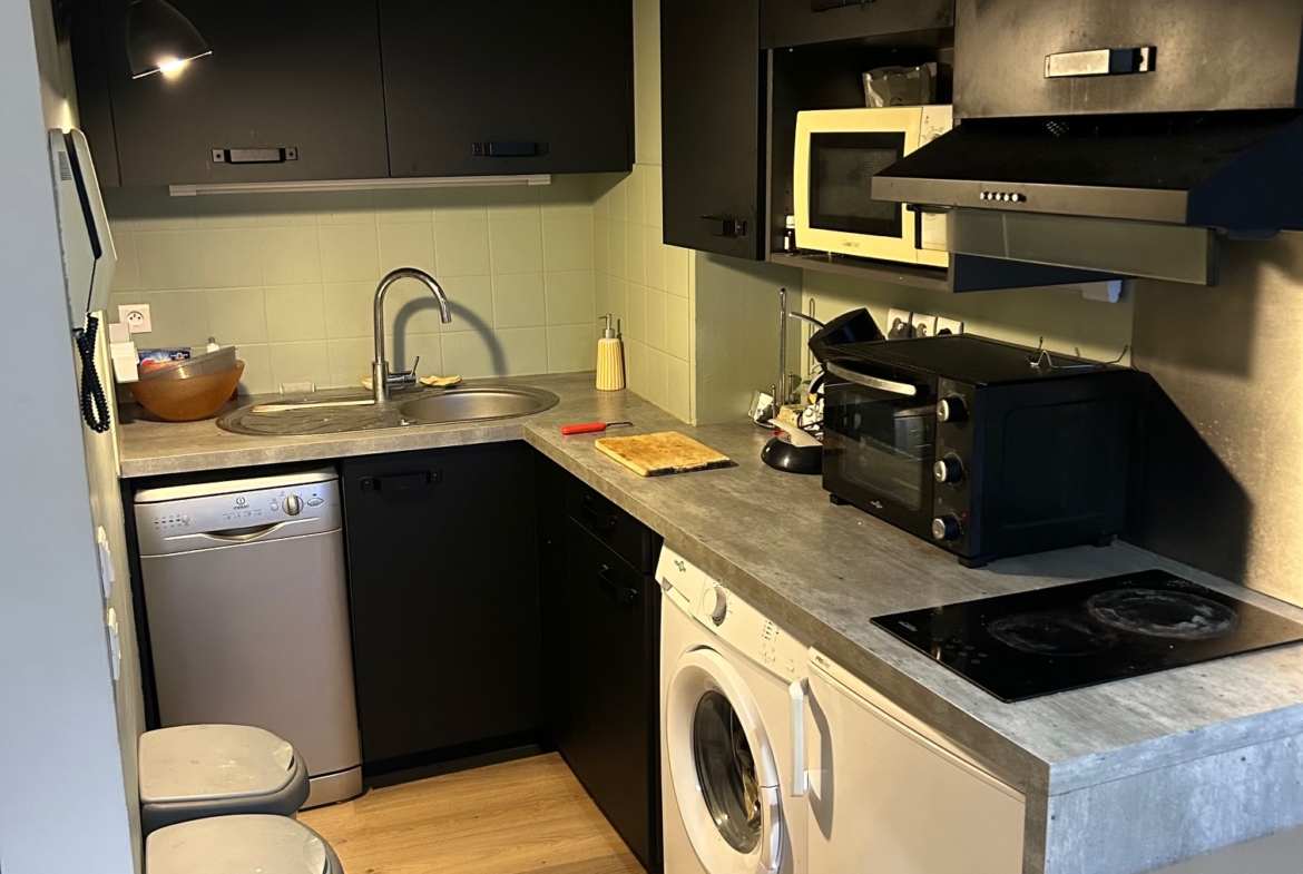 Proche des commodités – Appartement de type studio mezzanine meublé comprenant une pièce de vie avec coin kitchenette meublée et équipée, une salle de bains avec WC et un espace nuit en mezzanine. Une place de stationnement.