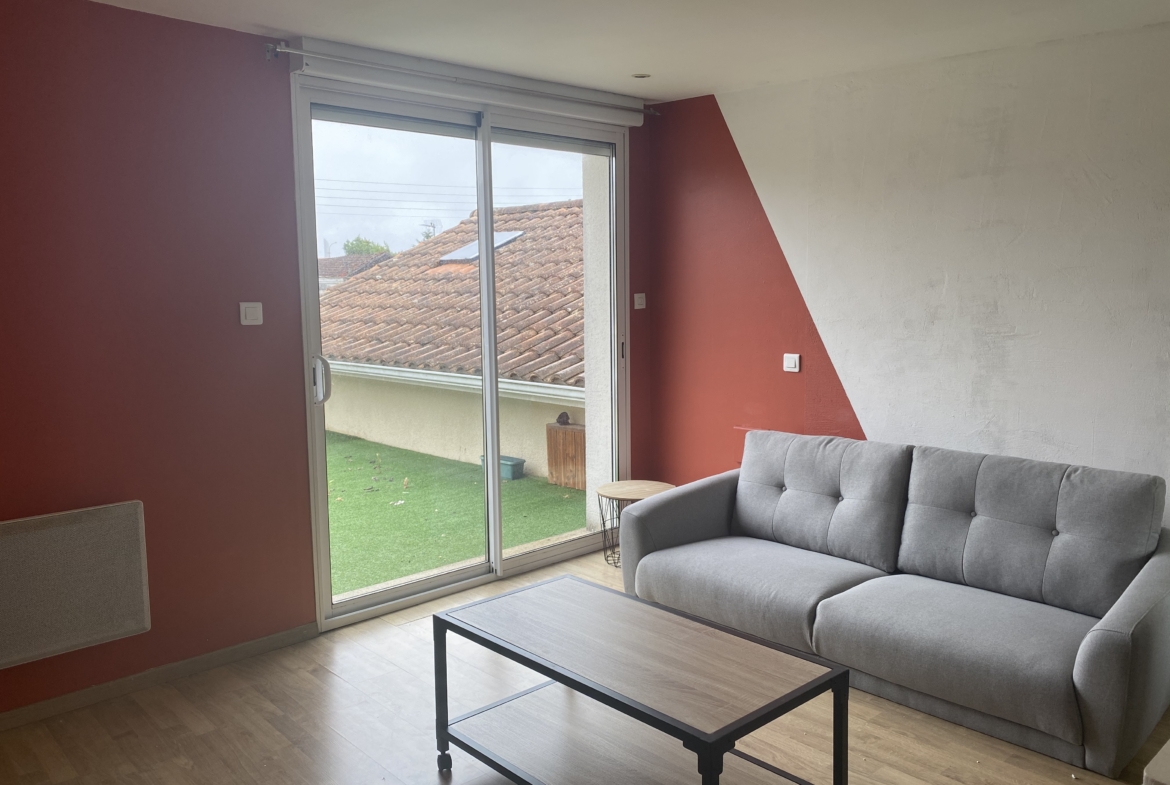 Proche de l’avenue Thiers à Cenon et du Tram – Appartement T2 meublé, en duplex comprenant un séjour, un coin cuisine meublée et équipée, une chambre et une salle de douche, WC. Terrasse.