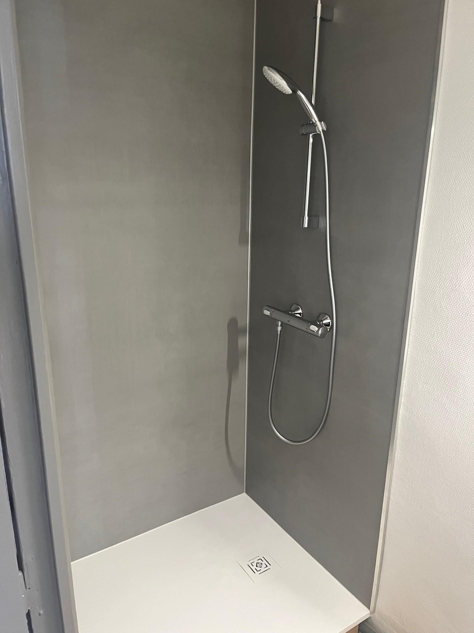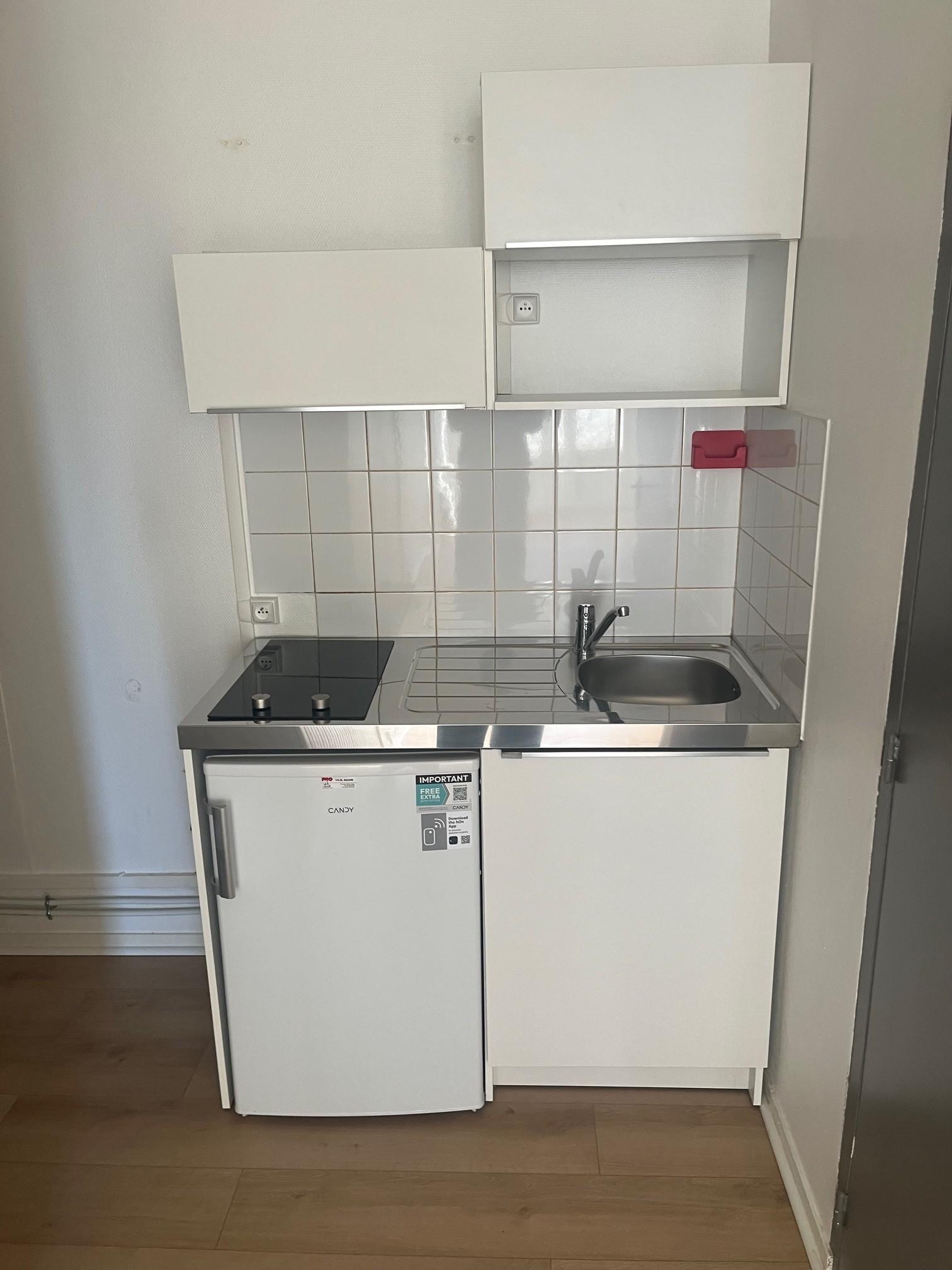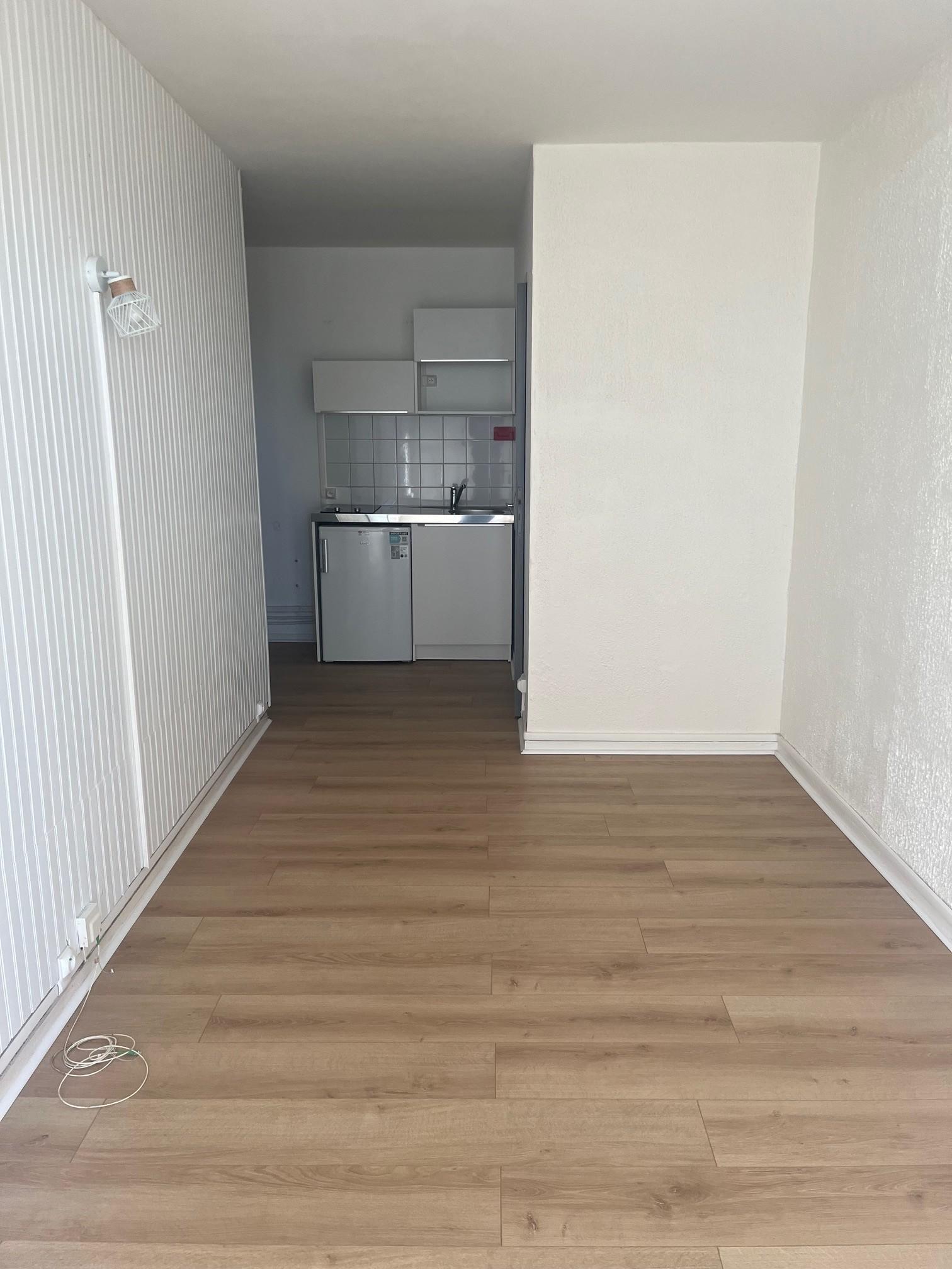 Appartement de type studio comprenant une pièce de vie avec coin kitchenette meublée et équipée, une salle de douche et un WC séparé.