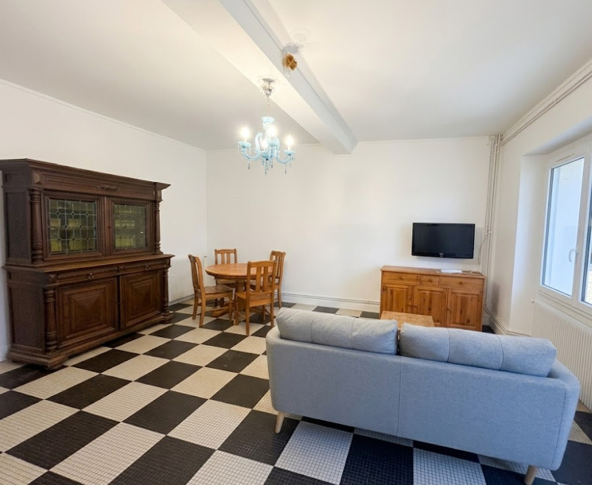 Maison de Type T4 meublée d’environ 110 m² comprenant au rez-de-chaussée : une entrée, une cuisine meublée et équipée, un séjour donnant sur terrasse et WC. A l’étage : 3 chambres et une salle de douche avec WC.