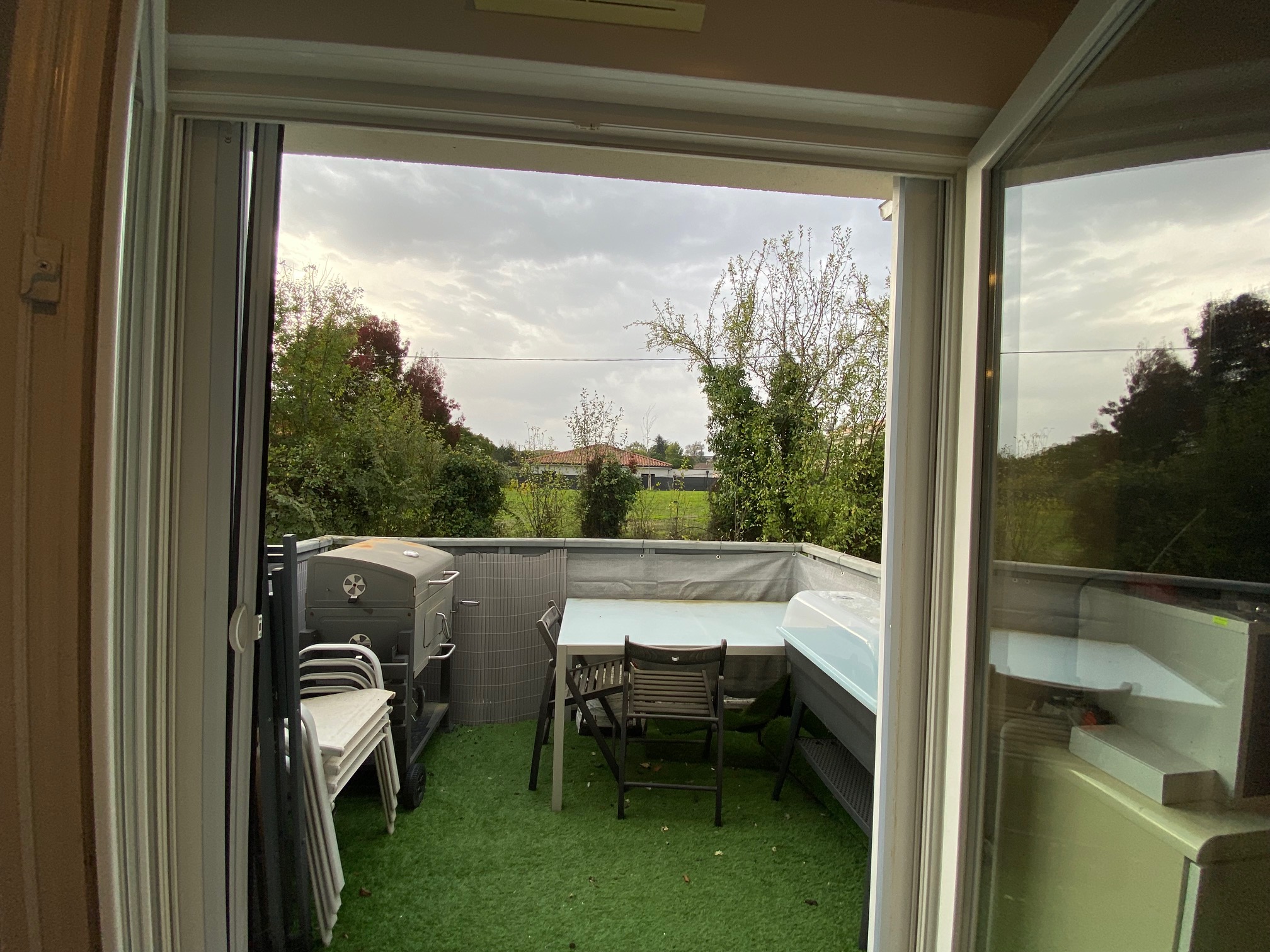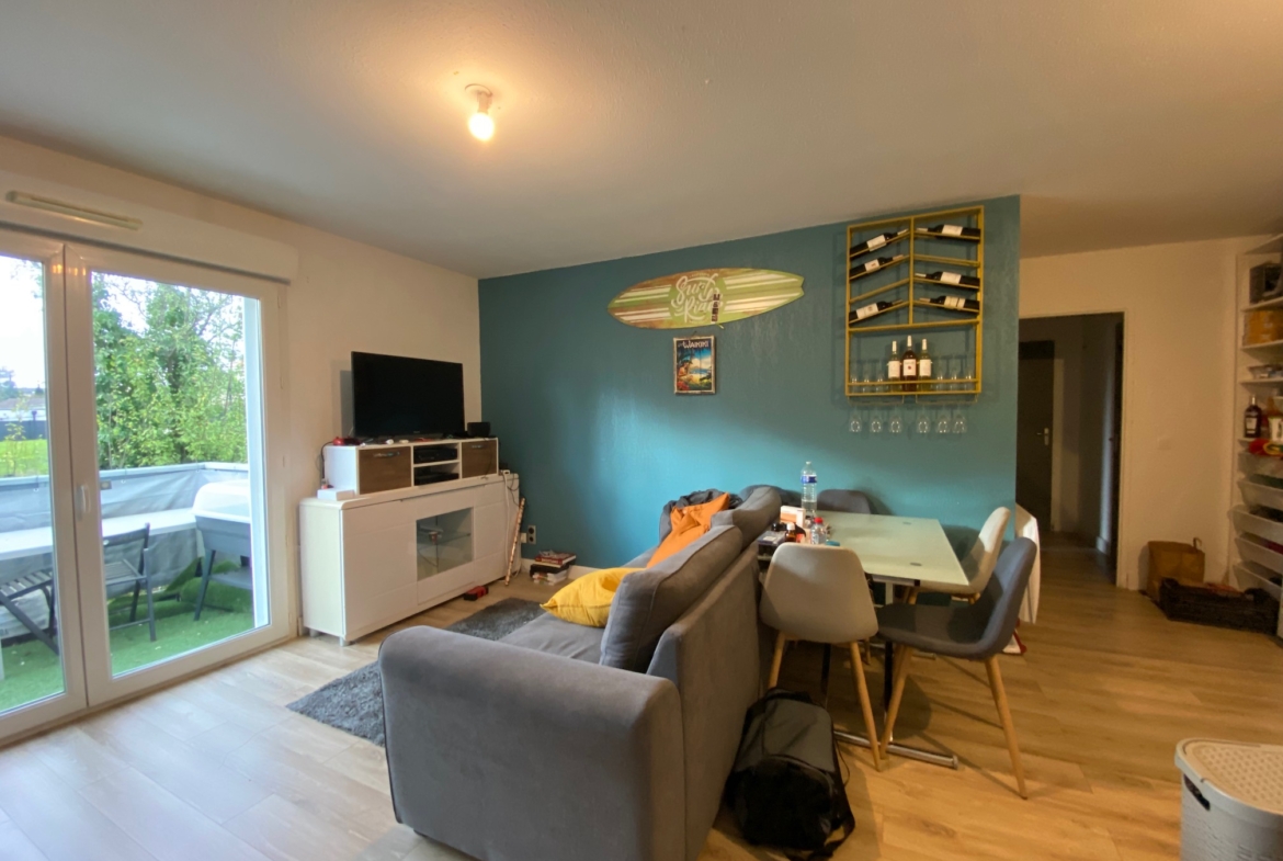 Montussan – à 10min de la rocade, dans une résidence calme, joli T3 meublé avec terrasse donnant sur la campagne, comprenant séjour/cuisine américaine, deux chambres, une salle de douche, WC séparés. Une place de parking.